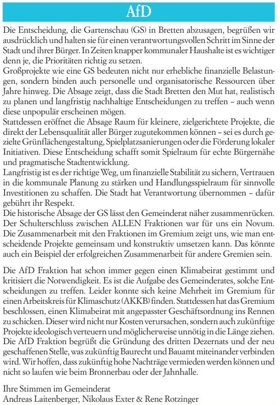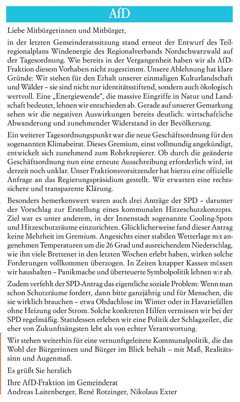 AfD-Fraktionsbeitrag zur Gemeinderatssitzung am 29.07.2025